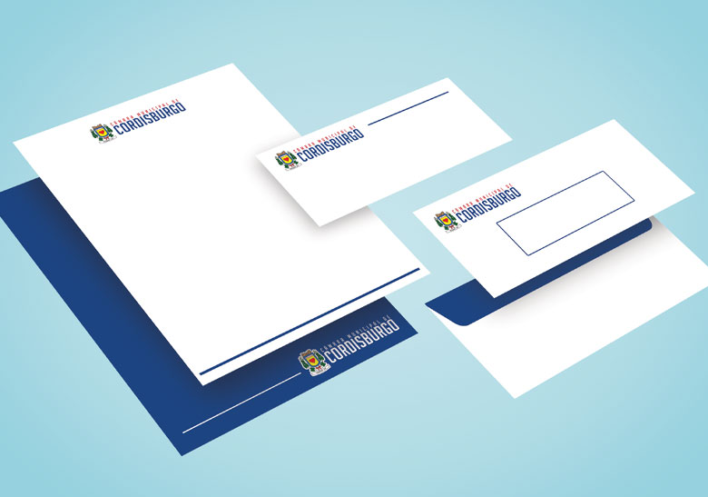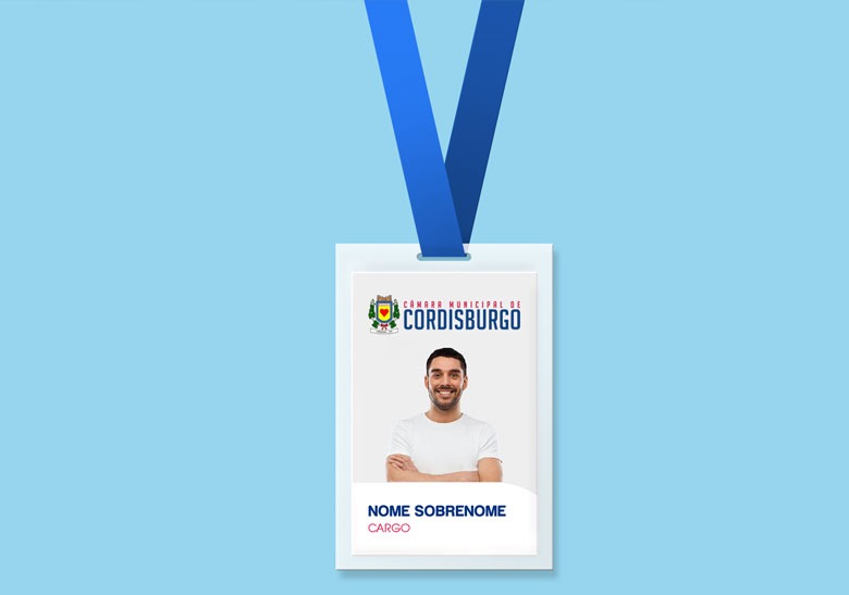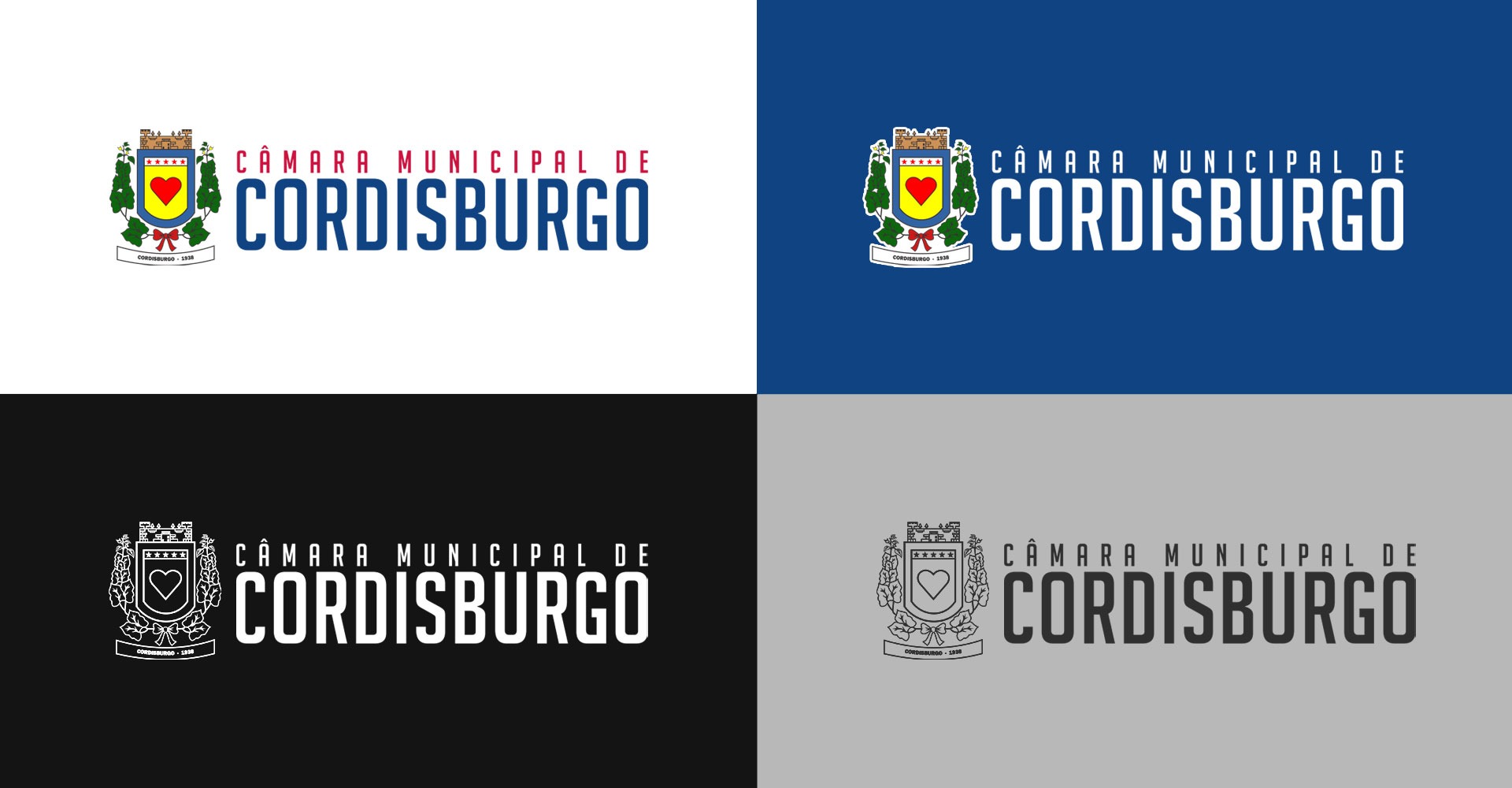 O logo traz o padrão de aplicação do brasão municipal na lateral esquerda e a nomenclatura do órgão ao lado direito, com o nome da cidade em destaque na cor azul, compondo com a cor vermelha na parte superior.