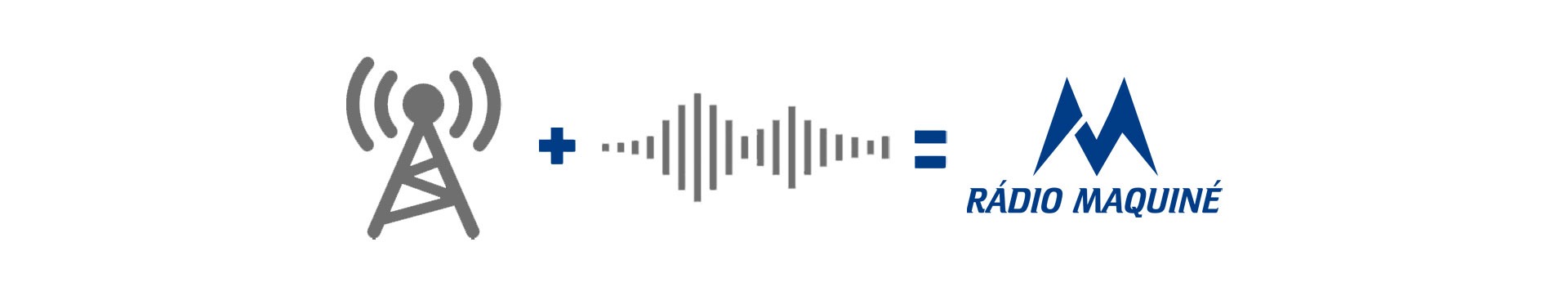 A representação de uma antena e ondas de rádio forma a letra "M" de Maquiné.