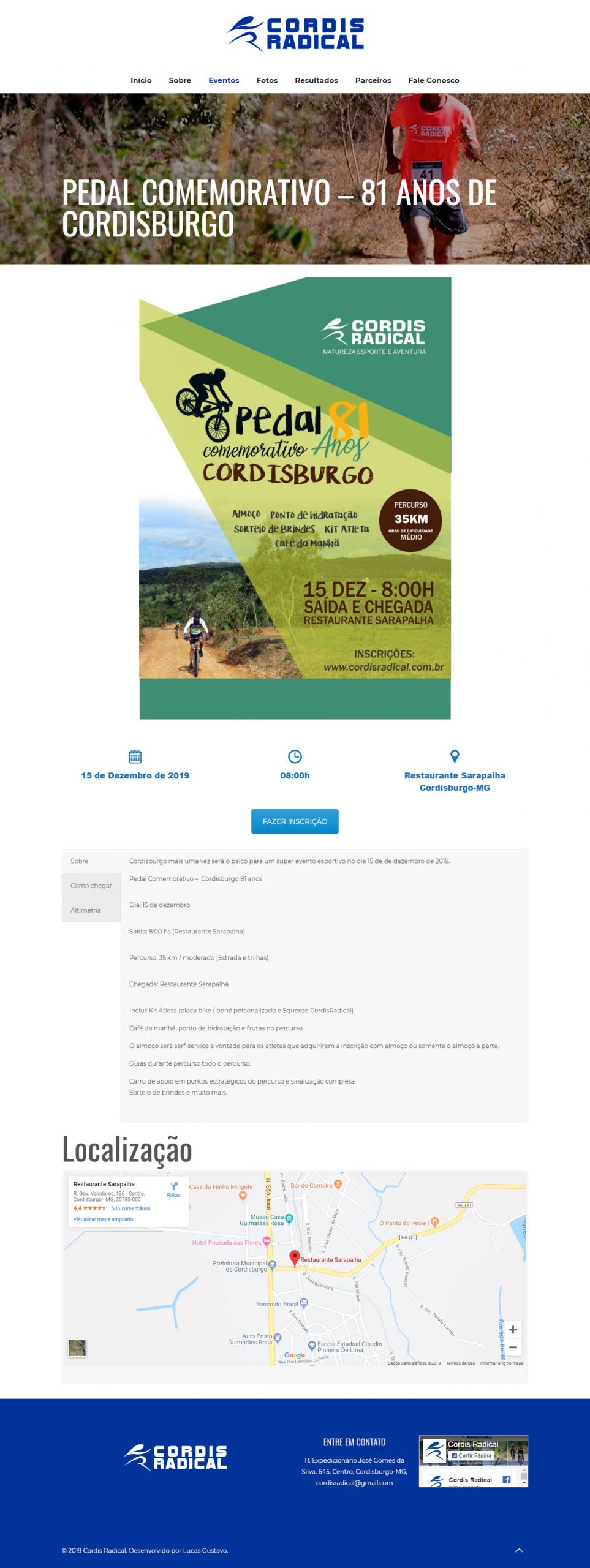 Com o intuito de proporcionar aos atletas amantes dos esportes de aventura, a Cordis Radical realiza eventos com o propósito de apresentar a atletas profissionais e amadores, um novo conceito em eventos esportivos, com trilhas com muito verde, travessia em córregos de água cristalina e estradas seculares, na região de Cordisburgo-MG.